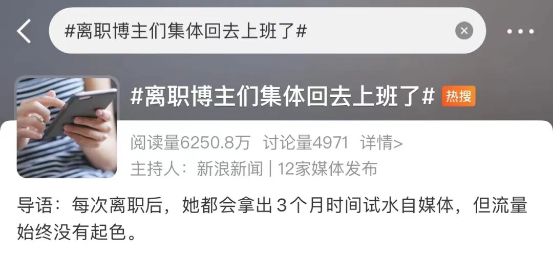 回到文章开始时的那个热搜:“离职博主们集体回去上班了”。