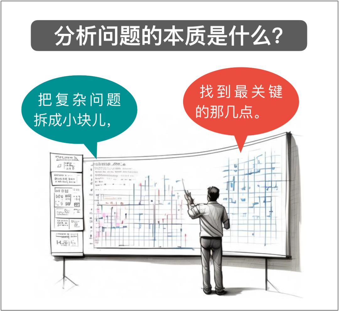 分析问题的本质就是:把复杂问题拆成小块儿,找到最关键的那几点。
