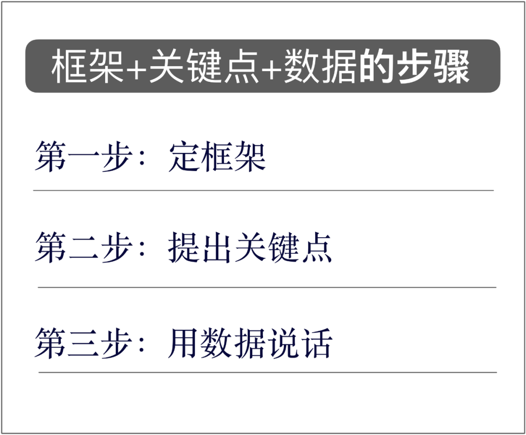容易上手的简便方法:“框架+关键点+数据”。用这个公式来概括。