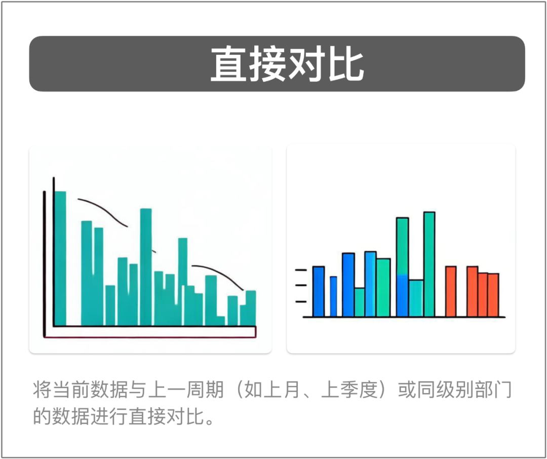 将当前数据与上一周期(如上月、上季度)或同级别部门的数据进行直接对比。