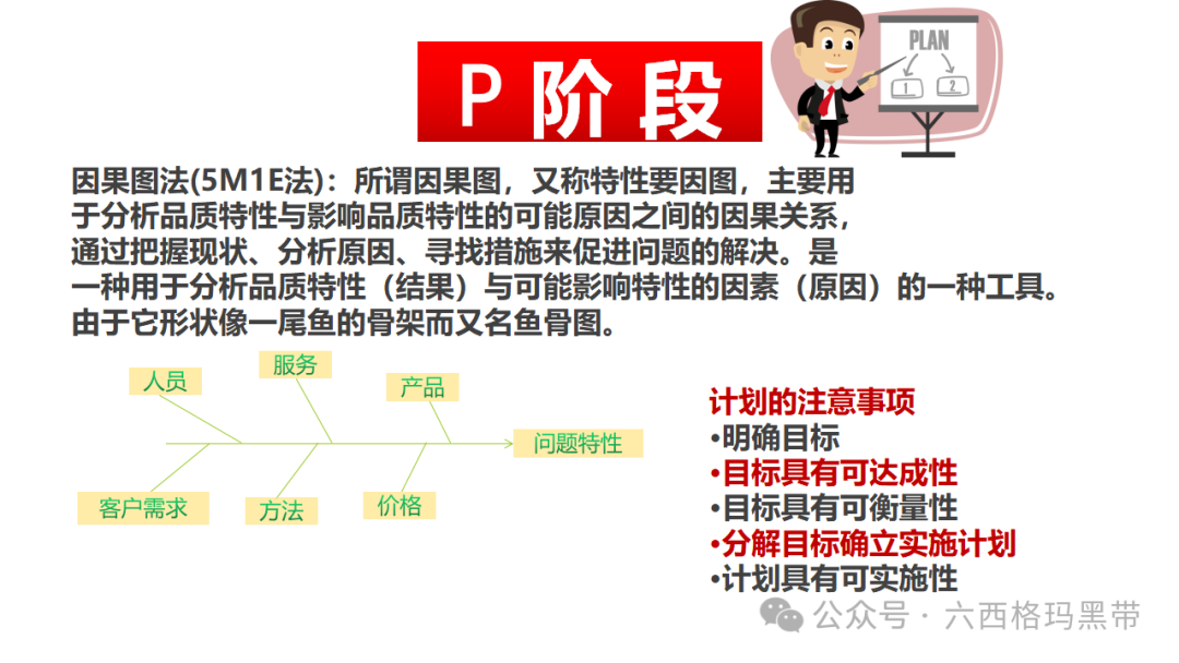 因果图法(5M1E法):从人、机器、材料、方法、环境、测量六个维度深入分析问题原因,为制定有效措施提供科学依据。