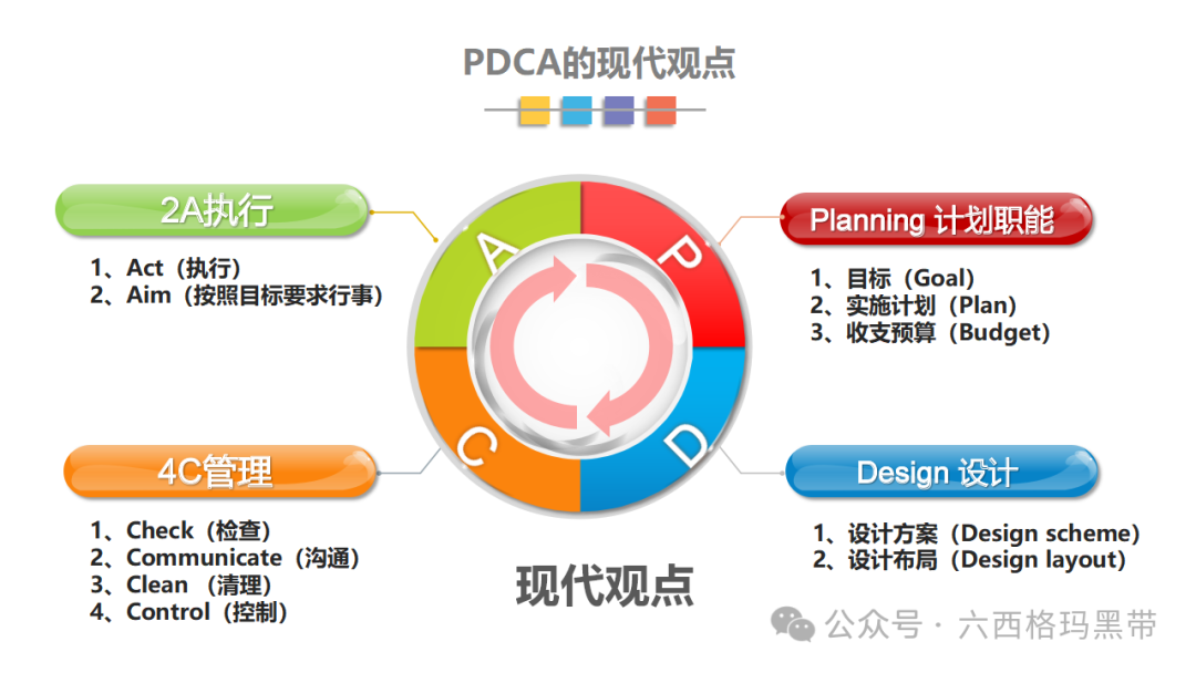 传统的PDCA循环强调计划、执行、检查和行动的循环迭代。而在现代管理实践中,这一循环被赋予了更加丰富的内涵。例如,在“Action”阶段,除了纠正问题外,还强调了标准化成功经验、沟通分享、清理不必要的流程和控制成本等多个方面。同时,一些组织还将“Design scheme”(设计方案)和“Design layout”(设计布局)等前期准备工作纳入循环之中,形成了更加完整和系统的管理框架。