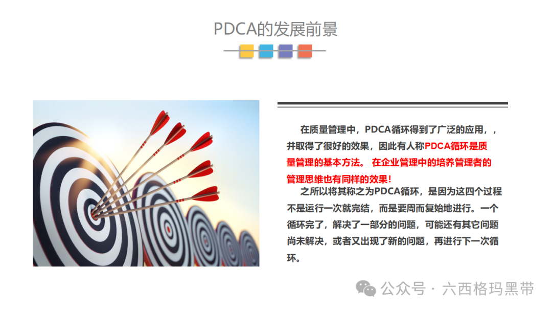 在质量管理领域,PDCA循环已经得到了广泛的应用,并取得了显著的效果。未来,随着质量管理理念的不断深入和技术的不断进步,PDCA循环将在质量管理中发挥更加重要的作用。组织可以通过引入先进的质量管理工具和方法,如六西格玛、精益管理等,与PDCA循环相结合,形成更加完善、高效的质量管理体系。