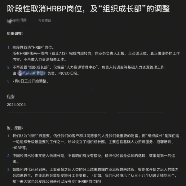 7 月 4 日,据“大厂青年”消息,有赞内部宣布阶段性取消 HRBP 岗位,所有 HRBP 未来一周内完成内部转岗,向业务负责人汇报,且必须…